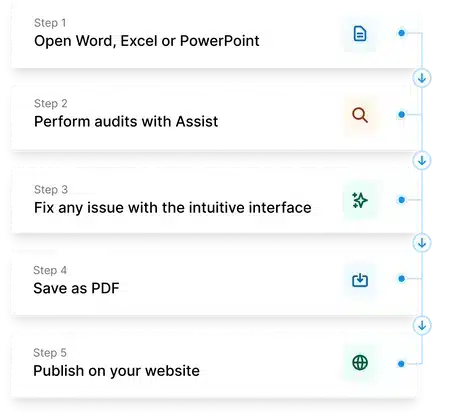 With a quick installation, Assist Pro integrates directly into Microsoft Office, allowing users to immediately start fixing accessibility issues without the need for prior training.