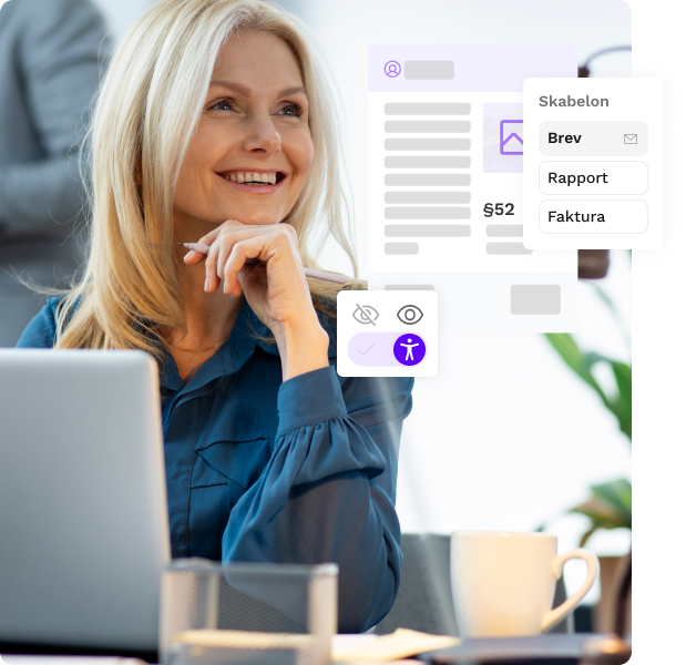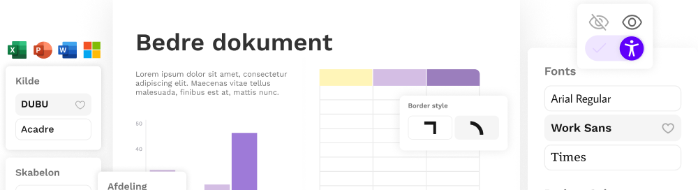 Indbyggede tilgængelighedsfunktioner sikrer, at dokumenterne kan læses og bruges af alle, uanset behov eller tekniske hjælpemidler.