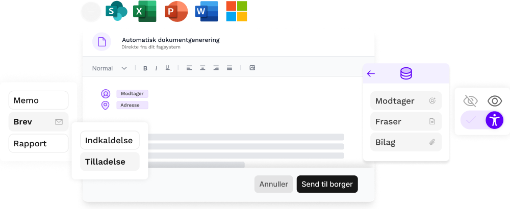 Når disse tre elementer arbejder sammen, opnår organisationer en effektiv, sikker og tilgængelig dokumentproces, der sparer tid, reducerer fejl og gør det nemt at overholde regler og retningslinjer. Med den rette løsning bliver produktiv dokumentgenerering en realitet.