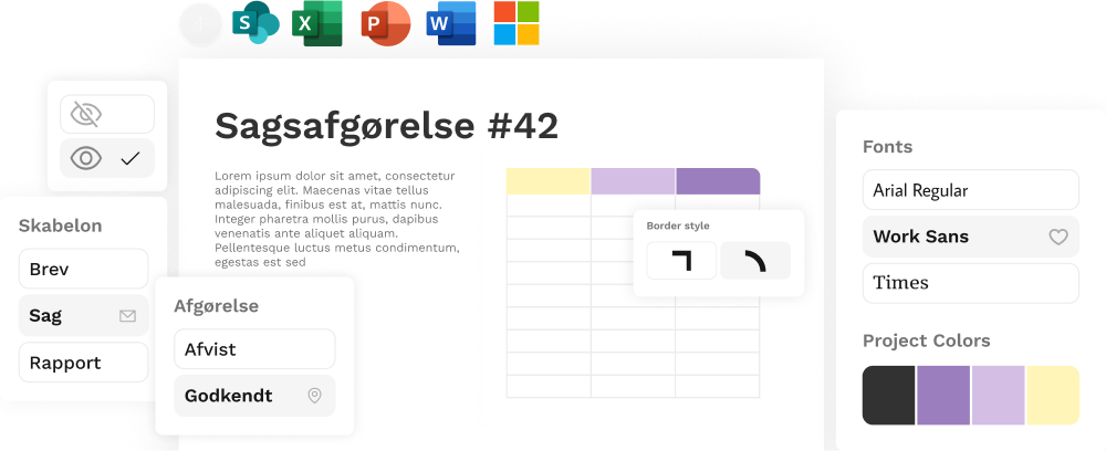 Effektiviser jeres tid og undgå fejl med automatiserede dokumenter, der sikrer ensartethed og compliance. Gør sagsbehandlingen hurtigere og mere effektiv med intelligente skabeloner.
