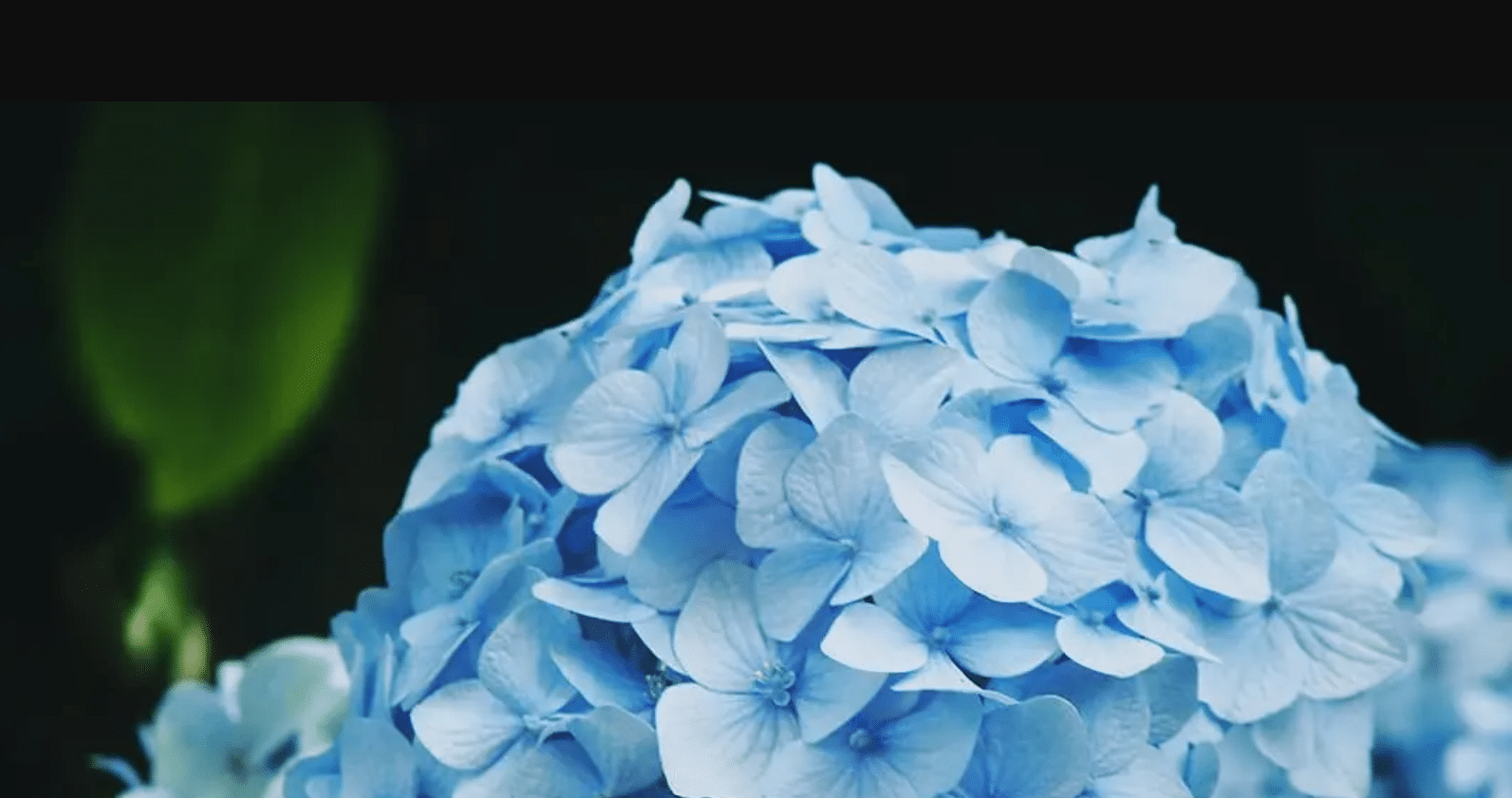 • “Blue flower of the French hydrangea, or hortensia (Hydrangea macrophylla).”