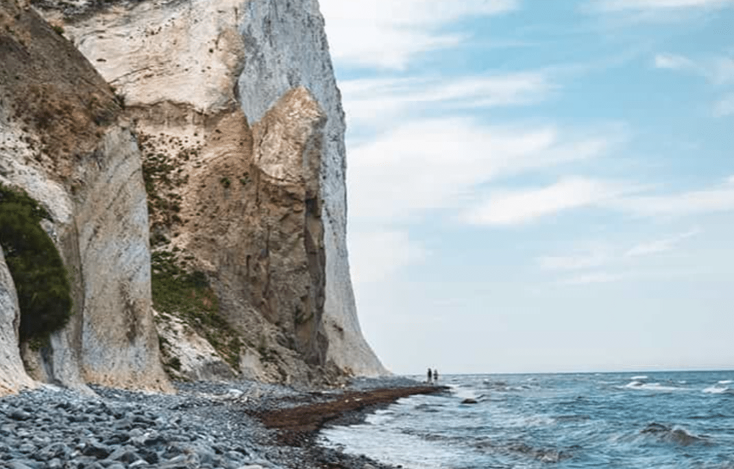 • “Two people standing beneath Møns Klint in southern Denmark on the coast of the Baltic Sea.”