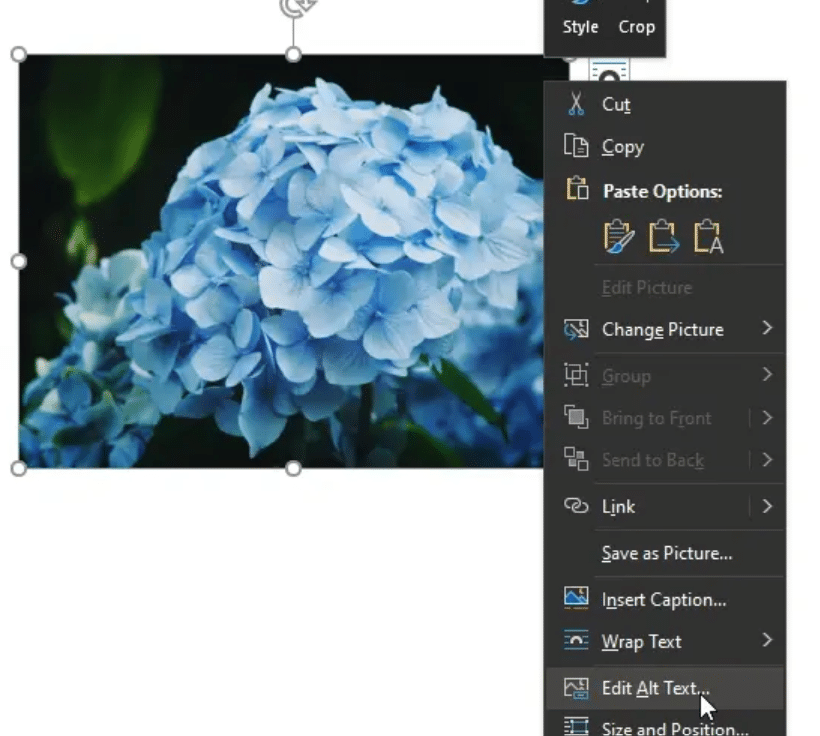 2. Right-click the picture and choose Edit alt text in the menu that appears.