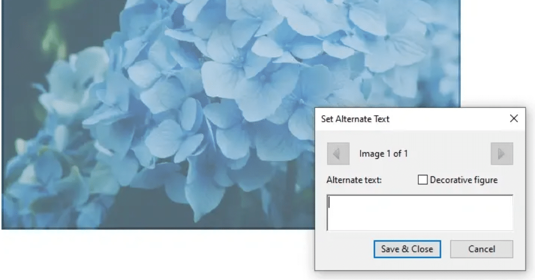 4. Save your document or find the next image that needs an alt text and repeat step 1-3.
