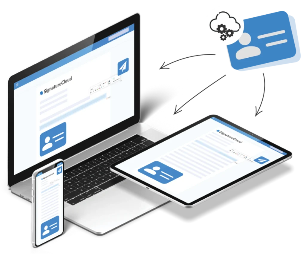 SignatureCloud works across all devices and browsers. Whether you are accessing Outlook from a computer, phone or tablet – your signature will always be with you.